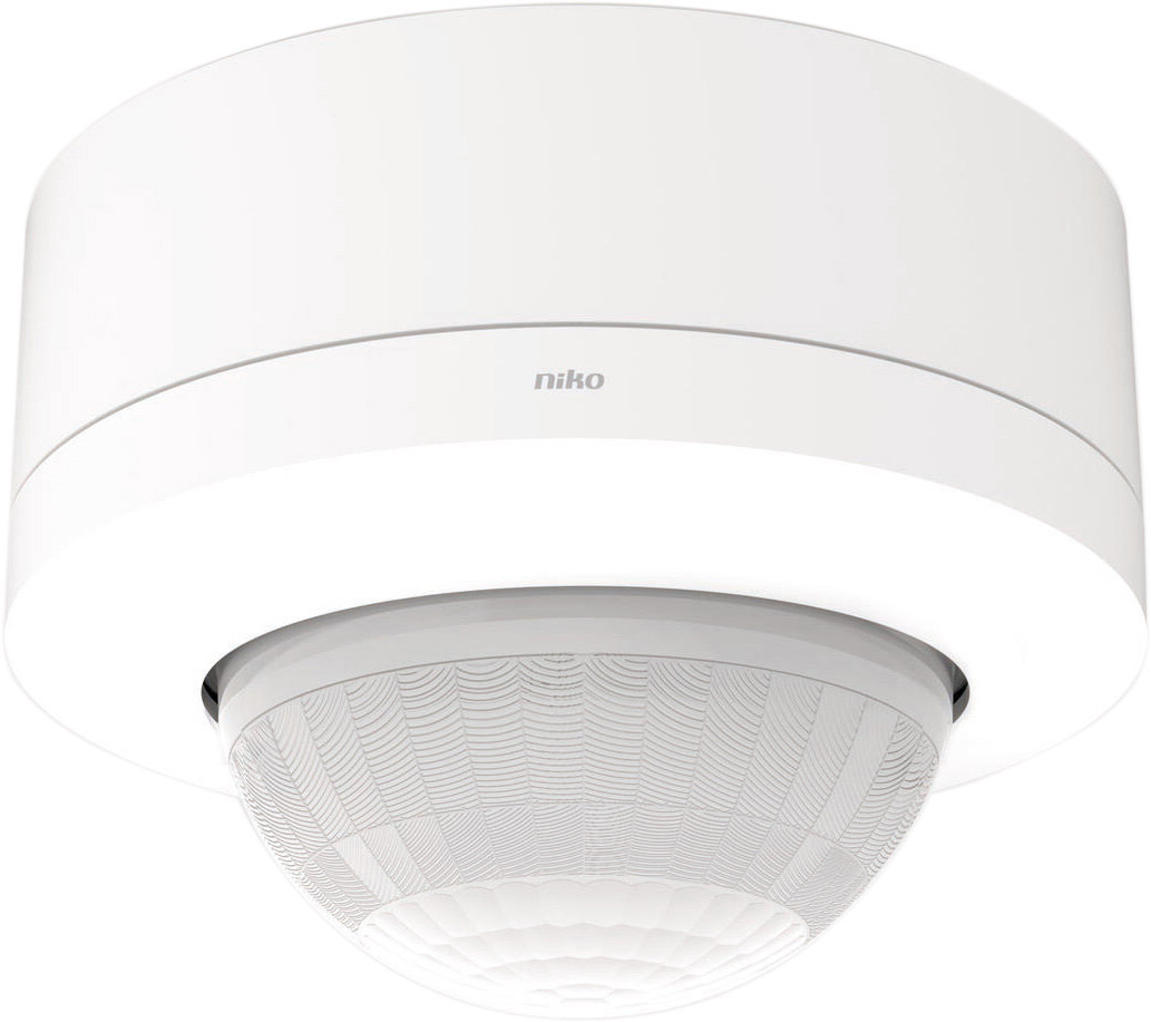 DALI-2 certifierad master sensor, long range, för utanpåliggande montering. Denna närvarosensor är en master sensor med ett stort utbud av avancerade funktioner. Den har lång räckvidd för DALI-ljusstyrning i upp till 4 dagsljuszoner. Utöka räckvidden med en DALI-2 sekundär sensor (353-752021) eller kombinera den med andra P46 DALI-2 sekundär sensorer i P40/M40 serien. Funktioner • Räckvidd: Ø37 meter vid en monteringshöjd på 3 meter • Räckvidden kan utökas med upp till 5 sekundära sensorer (353-752021) • Velegnet til styring af op til 64 DALI outputenheder • Möjligt att ansluta upp till 64 externa DALI-2 ingångsenheter via DALI-buss • Auto-konfiguration vid byte av en DALI-spole/DALI-enhet • Stöder DALI broadcast (standard) och DALI Adressable • Internt relä för styrning av HVAC/standby-minimering/ljus (On/Off) • Externt DALI-relä för HVAC/standby-minimering /ljus (On/Off) • Integrerad Tunable white med programmerbara inställningar • Human centric lighting (dygnsrytmljus) med 24 programmerbara inställningar • Trådlös master-till-master-anslutning • Extern aktivering via externa system, t.ex. larm • Dagsljusstyrning med manuell dimmer • Lämplig för BMS-integration • Justerbar PIR-känslighet (5 nivåer, inkl. inaktiverad) i 3 x 120° • Inställningar och konfiguration kan låsas med PIN-kod. Ljusstyrning • Dagsljusstyrning i upp till 4 zoner • Automatisk tänd/släck • Manuell tänd/släck via 230V tryck med automatisk släck • Endast tänd via 230V tryck med automatisk släck • Bluetooth tryck, använd Niko typnr.: 72-503, 72-513, 72-504, 72-514 • 24V tryck och DALI interface, använd Niko typnr: 310-02200 • Skapa och aktivera upp till 16 ljusscenarier • Multizone för belysning av tavla/smartboard • Vikväggslösning, ljusstyrning i närområden, utökning av DALI-enheter till fler än 64 DALI-enheter • Orienteringsbelysning • Nattläge - få rätt ljusnivå både dag och natt • Tändnivå kan justeras när dagsljusstyrningen är inaktiv