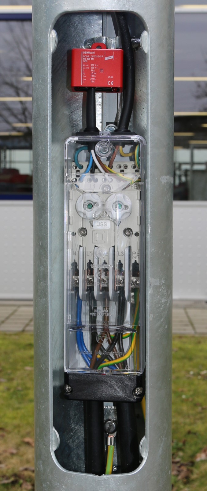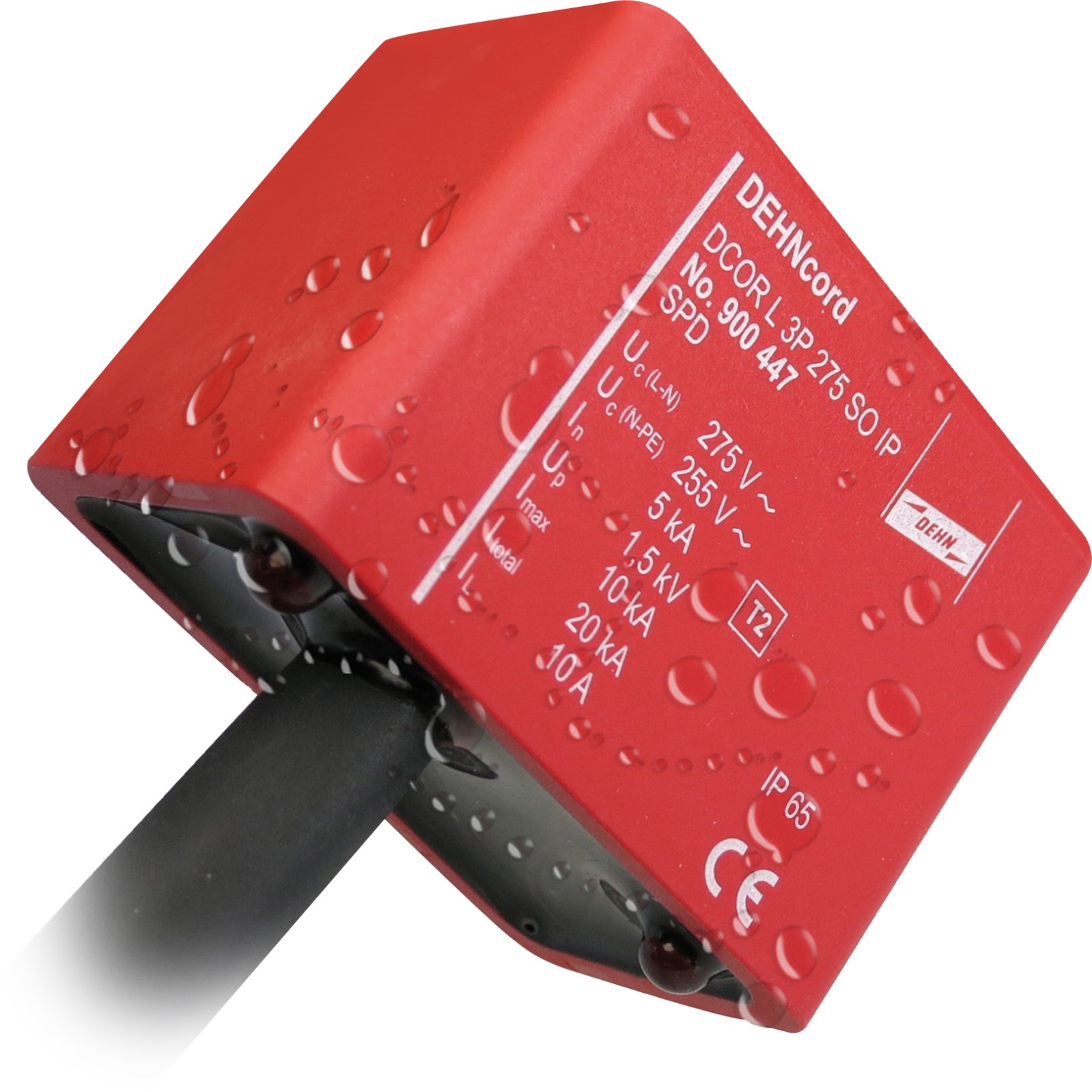 DEHNcord i IP 65 utförande är ett extremt kompakt mellankydd (Typ 2). Med diodindikering som lyser rött vid fel. Kan även kopplas i serie med lasten vilket då gör att lasten kopplas bort när skyddet har löst ut, är därför ett optimalt skydd för exempelvis LED-belysning såsom vägbelysning, ledpollare mm.