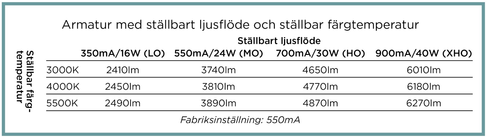 Plato Opal Teknik har ett bländskydd av opal akryl som ger en mjuk ljusfördelning för tex allmänbelysning och en hög färgåtergivning CRI > 90 (R9 > 50%). Plato Teknik är utformad för miljöer där ljuskvalitet är särskilt viktigt, så som skolor, kontor och vårdmiljöer utan att kompromissa med energieffektiviteten. Spridningsvinkel 80°. Ställbart ljusflöde i fyra lägen och ställbar färgtemperatur 3000/4000/5500K. Stomme av återvunnen vitlackerad aluminium och stål. Kupa av opal akryl. Monteras i undertak med synlig T-profil. Kapslingsklass är IP44 underifrån i tätt tak, IP20 ovanifrån. Armaturen är försedd med CLO-drivdon typ DALI/Switch&Dim för extern styrning. CLO-drivdonen kompenserar för LED-ljuskällans ljusnedgång över tiden genom att öka strömmen. Det innebär att ljusflödet ur armaturen kommer vara konstant under hela livslängden. Levereras med 2 m 4x 1 mm² anslutningsledning och fri ände. Plato kan enkelt kompletteras med olika tillbehör som dekorplåtar vilket förändrar armaturens karaktär. Plato har ställbart ljusflöde via dip-switchar direkt på drivdonet och ställbar färgtemperatur via koppling mellan drivdon och LED-platta, se lumentabell under bilder eller längre ned på produktsidan alt. montageanvisning. montageanvisning. Fabriksinställning är medel (MO).