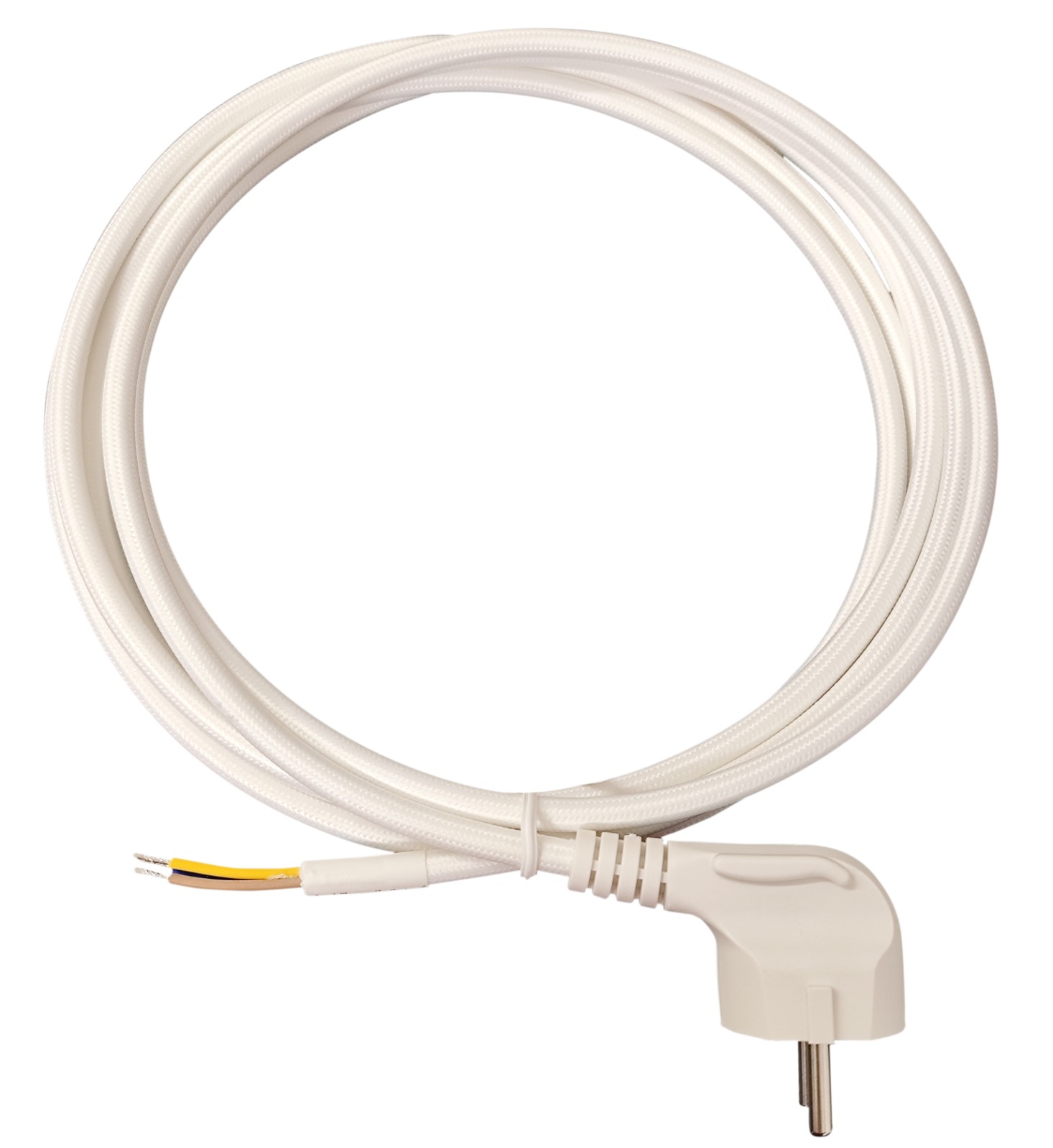 Flow system vit textilledning 3m 3x0.75mm med stickpropp.