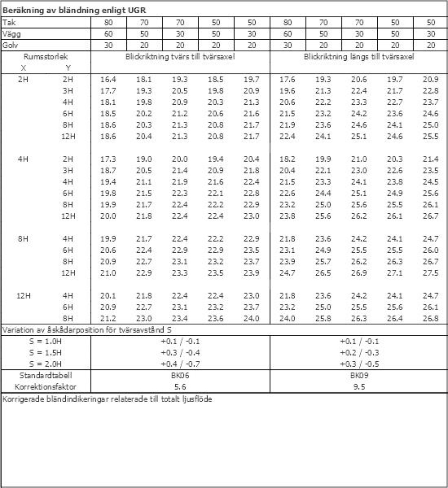 LJUSTEKNISKA DATA