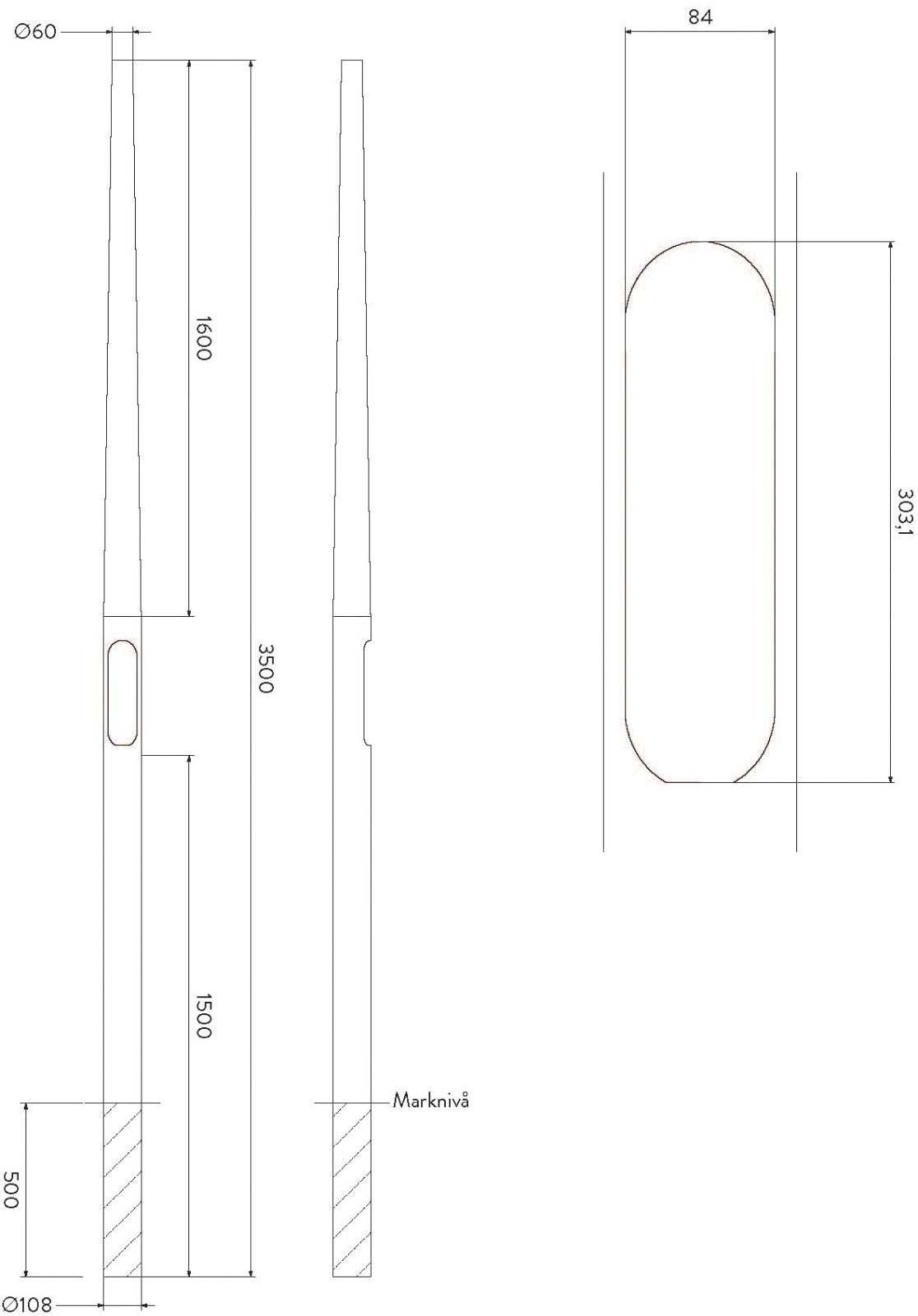 STOLPE KOMPOSIT 3M 60/108 9005