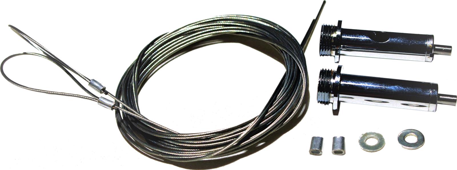WIREUPPHÄNG M13 JUSTERBAR Wireupphängnings kittet innehåller: 2st wiresnabblås M13 (Bajonett). 2st wire 1,2mm x 2000mm med Ögla. 2st brickor. 2st klämringar.