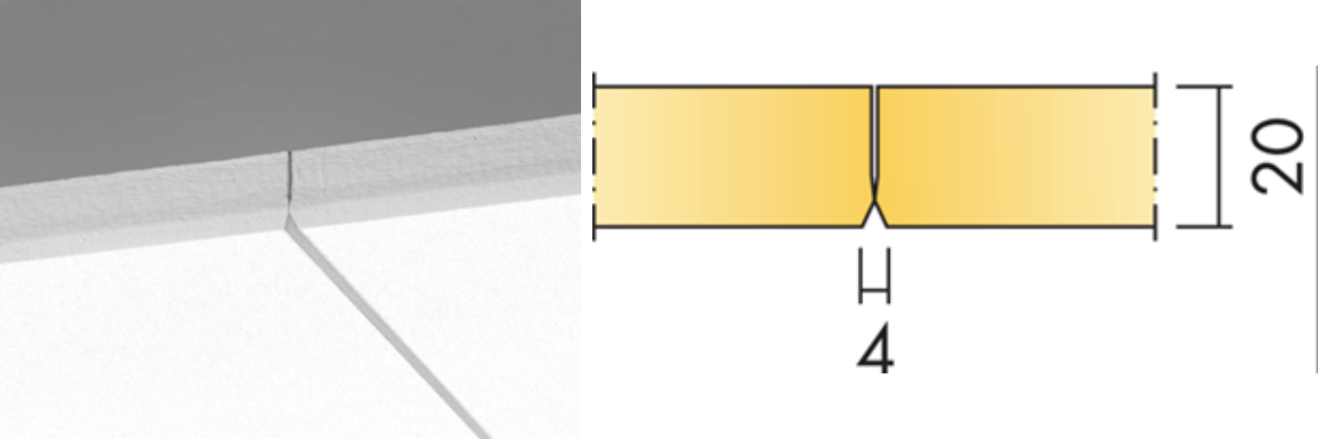 Synligt bärverk med modulmått 600x600mm, lätt att demontera. Plato 595x595mm kan enkelt ersätta en akustikskiva varför inte med en upphöjningsram E7940001 för att förstärka nivåskillnaden i taket. För att behålla försänkt synligt bärverk och diagonal kantdesign kan t.ex Cylli infälld användas med avlastingsskiva E7910454.